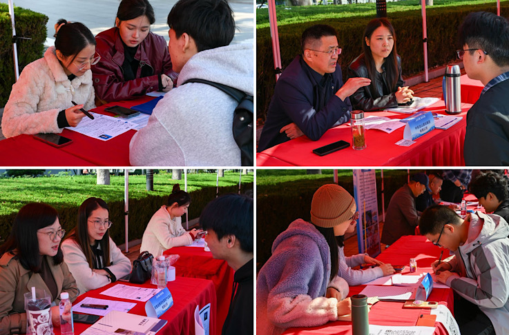 为提升就业服务质量,学校统筹规划,创新服务模式,优化服务流程,现场设置“党员服务台”“就业指导专区”“AI智慧就业服务台”三大功能区,提供就业指导、政策咨询、岗位筛选、简历优化、证件照拍摄等一站式、数字化服务320余次;就业服务社志愿者全程引导,秩序井然、对接高效。
