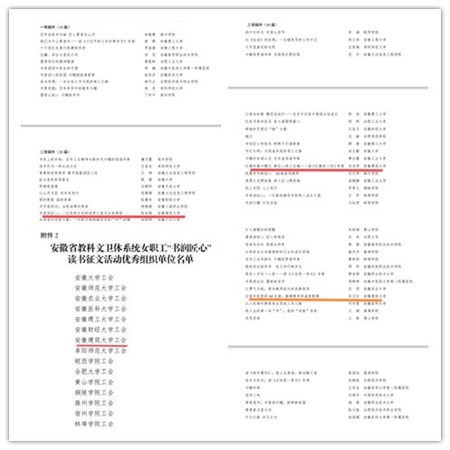 本网讯 近日,安徽省教科文卫体系统女职工“书润匠心”读书征文活动落下帷幕。我校推荐的3篇征文全部获奖,学校荣获优秀组织单位。