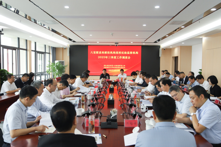 本网讯 10月11日,省纪委监委第八纪检监察室联系的派驻机构高校纪检监察机构2025年三季度工作调度会在我校召开。省纪委副书记、省监委副主任桂青出席会议并讲话。校党委副书记、校长蔡国军致辞。省纪委监委第八纪检监察室,驻省教育厅纪检监察组等4家派驻机构,中国科学技术大学、合肥工业大学和30所省属本科院校纪检监察机构负责同志参加会议。