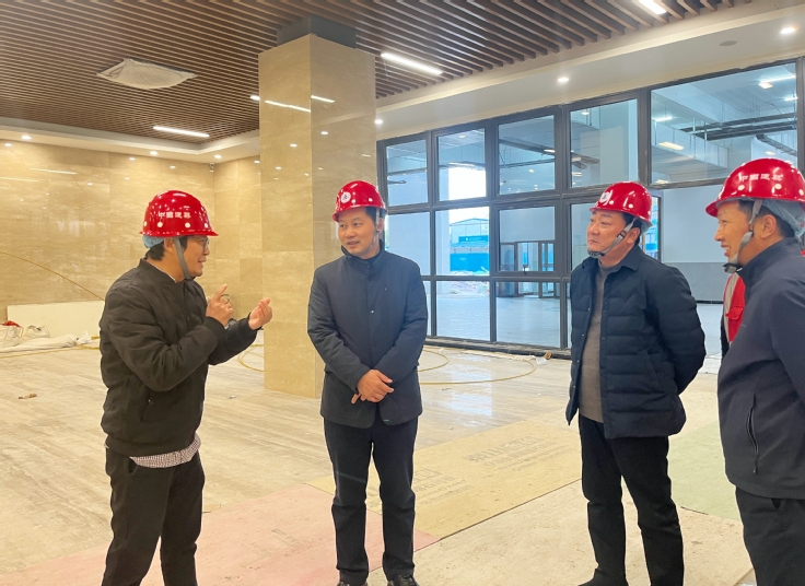 在新南园餐厅施工现场,黄多能详细了解工程进度情况,叮嘱施工人员既要做好自身安全防护,更要严把工程质量关。