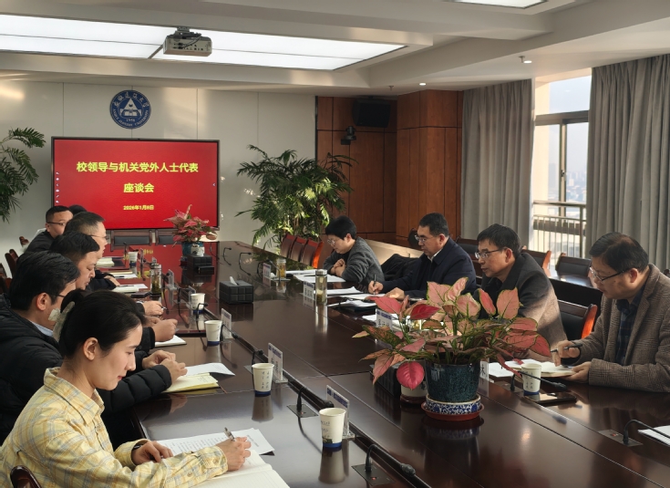 本网讯 为深入贯彻落实习近平总书记关于做好新时代党的统一战线工作的重要思想,进一步加强与机关党外代表人士的沟通联系,1月8日,机关党委召开机关党外代表人士座谈会。校党委副书记、校长蔡国军应邀出席会议,与机关党外代表人士深入交流,听取意见。机关党委书记吴运传主持座谈会。