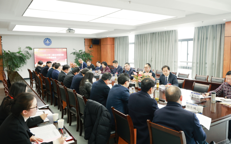 代表团会议后,主席团会议在紫云路校区徽风楼21楼第二会议室召开,会议听取各代表团讨论情况并审议会议有关决议(草案)。