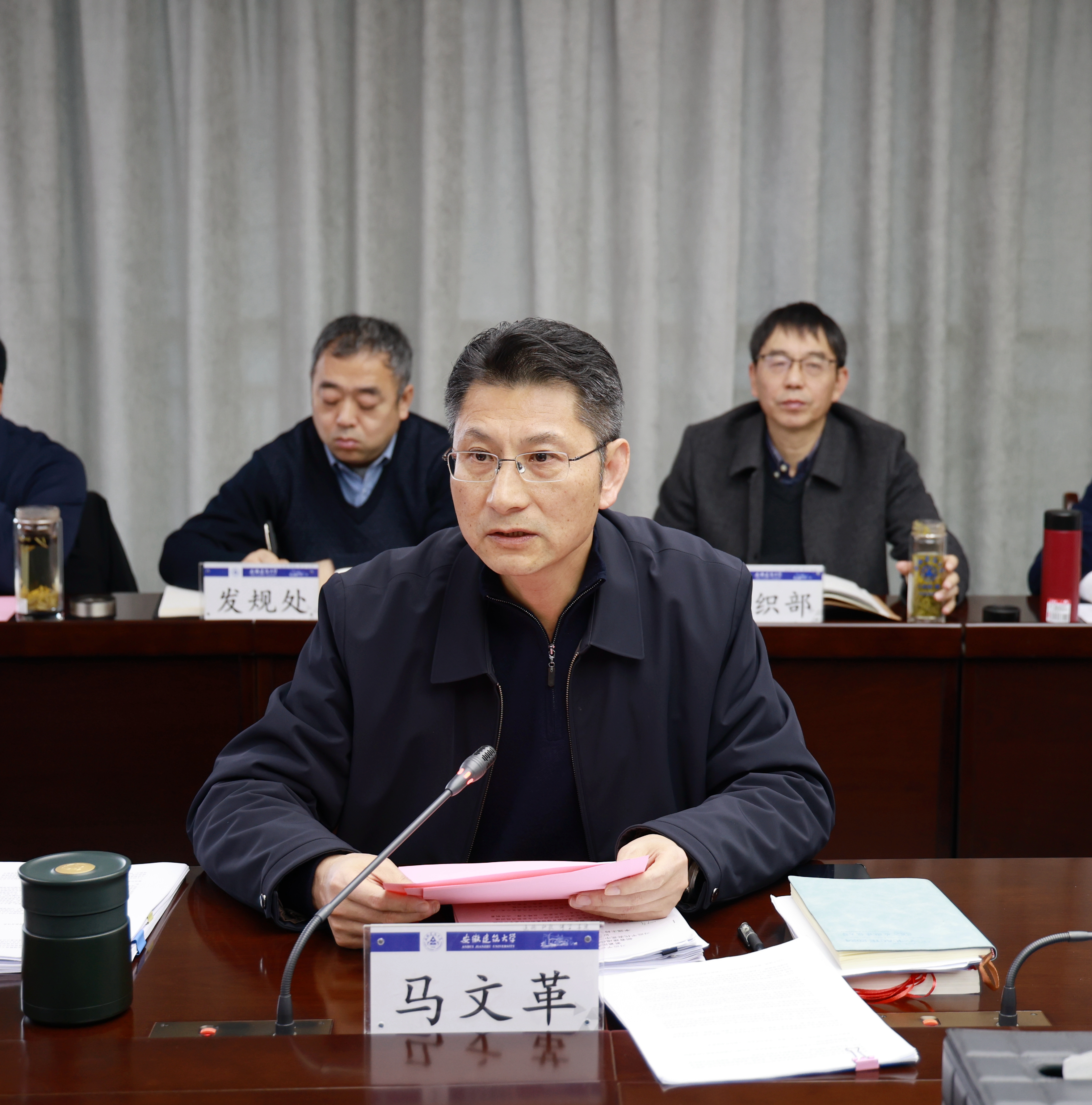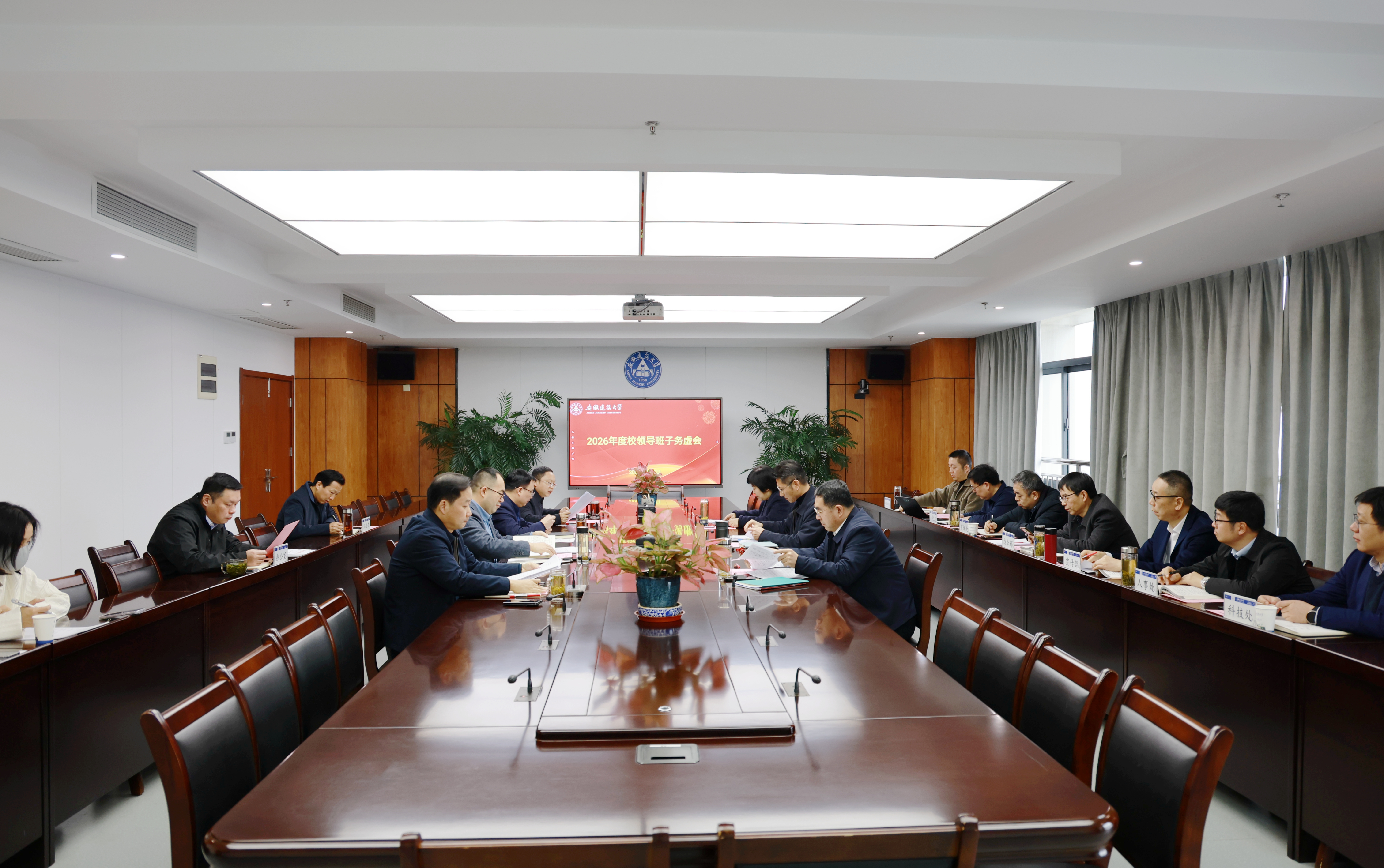 本网讯 为深入学习贯彻党的二十届四中全会精神,科学编制学校“十五五”规划,系统谋划2026年重点工作,持续提升学校内涵建设水平,2月5日,学校在紫云路校区徽风楼21楼第二会议室召开校领导班子务虚会。校领导班子成员出席会议,办公室、组织部、宣传部、纪委办、发规处、人事处、本科生院、科技处、科技成果转化处等单位主要负责人列席会议,校党委书记马文革主持会议。