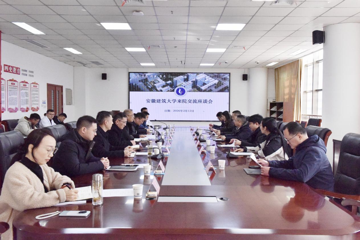 调研结束后,双方召开座谈交流会,会议由安徽医科大学第五附属医院党委书记孙其虎主持。他代表医院对高跃峰一行表示欢迎,介绍了医院发展历程、学科建设及科研规划,提出医院在临床医学、教研实践等方面稳步发展,期待与安徽建筑大学深化医工交叉合作,共同破解临床诊疗中的技术与材料难题。