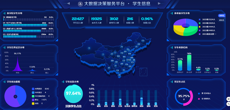 “十四五”期间,学校高度重视数据治理工作,以“数据同源、标准统一、共享共用”为目标,全力推进数据中心建设,建成了统一身份认证平台、统一信息门户平台、共享数据中心平台和数据清洗与整合平台,让数据成为学校科学决策的“智慧大脑”。实现人事系统、教务系统、学工系统、电子政务、科研系统、一卡通系统、资产管理系统、智慧图书馆、网上办事大厅、一表通平台等共计40多个系统身份集成和数据对接,为学校各部门工作提供了数据支持。