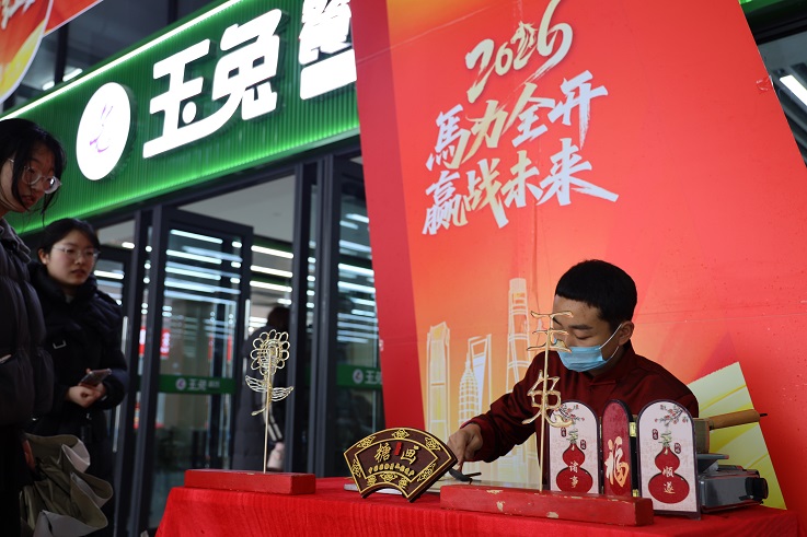 餐厅内活动热闹非凡、亮点纷呈。非遗糖画摊位前,艺人以糖为墨、以勺为笔,勾勒出栩栩如生的图案,让同学在品尝甜蜜的同时感受传统文化的魅力。欢乐套圈、幸运滚滚乐、盲盒投投乐等互动环节趣味十足,简单易操作又充满惊喜,吸引学子们排起长队踊跃参与,大家欢声笑语不断,现场氛围持续升温。