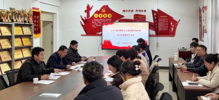 近日,全国党建工作样板支部安徽建筑大学土木工程学院岩土工程系教师党支部召开2025年度组织生活会,校党委副书记、校长蔡国军与支部党员同志一起学习检视,带头开展批评和自我批评,并结合自身工作体会和学习思考,与大家谈心交流。会议由支部书记刘洋主持。