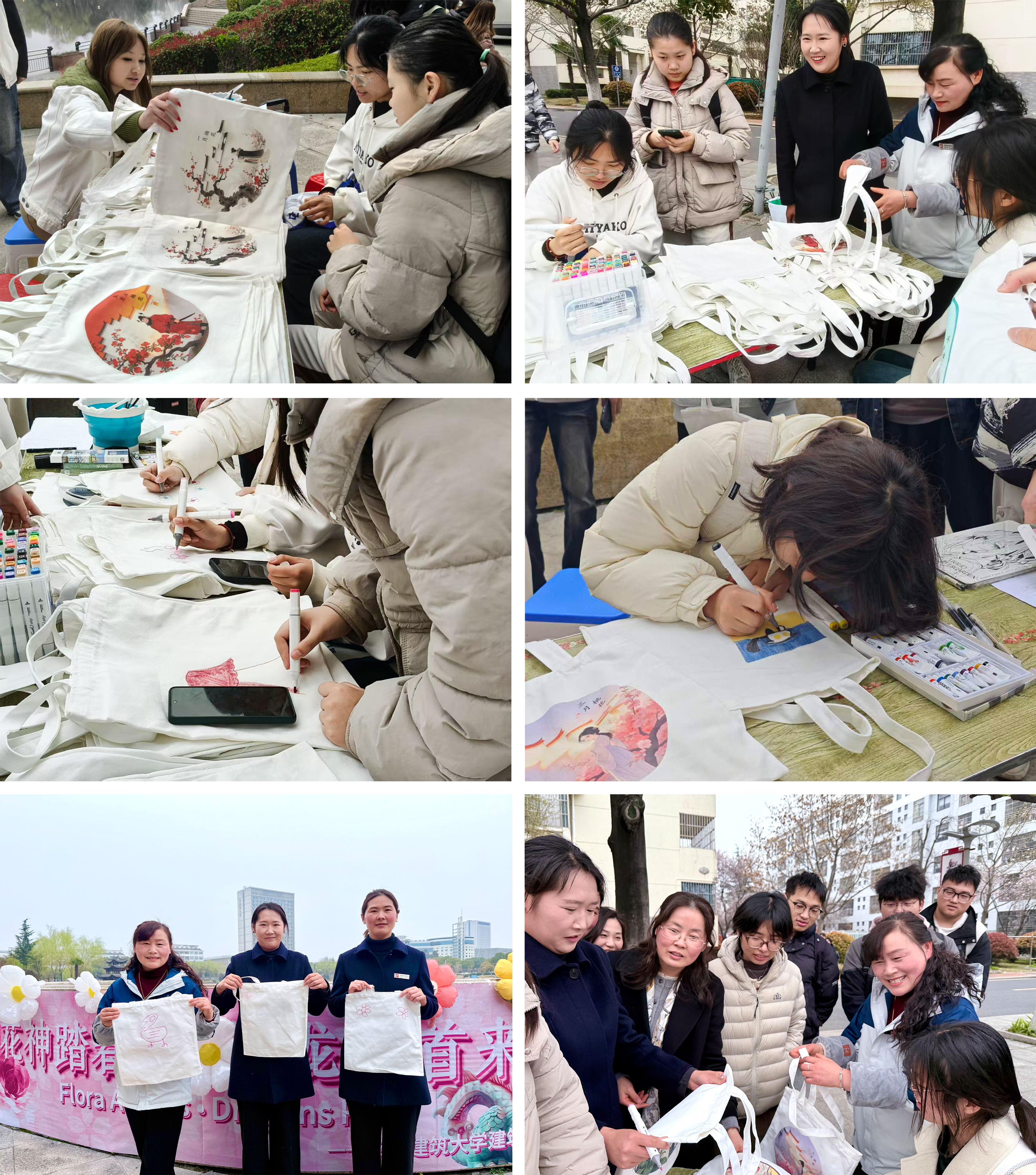 师生们踊跃参与,化身“非遗传承人”勾勒花神模样,部分作品融合龙纹元素,兼具祥瑞之气与清雅之韵。创作结束后,易海湖畔成为打卡地,师生与作品合影、分享心得,尽显传统文化魅力。