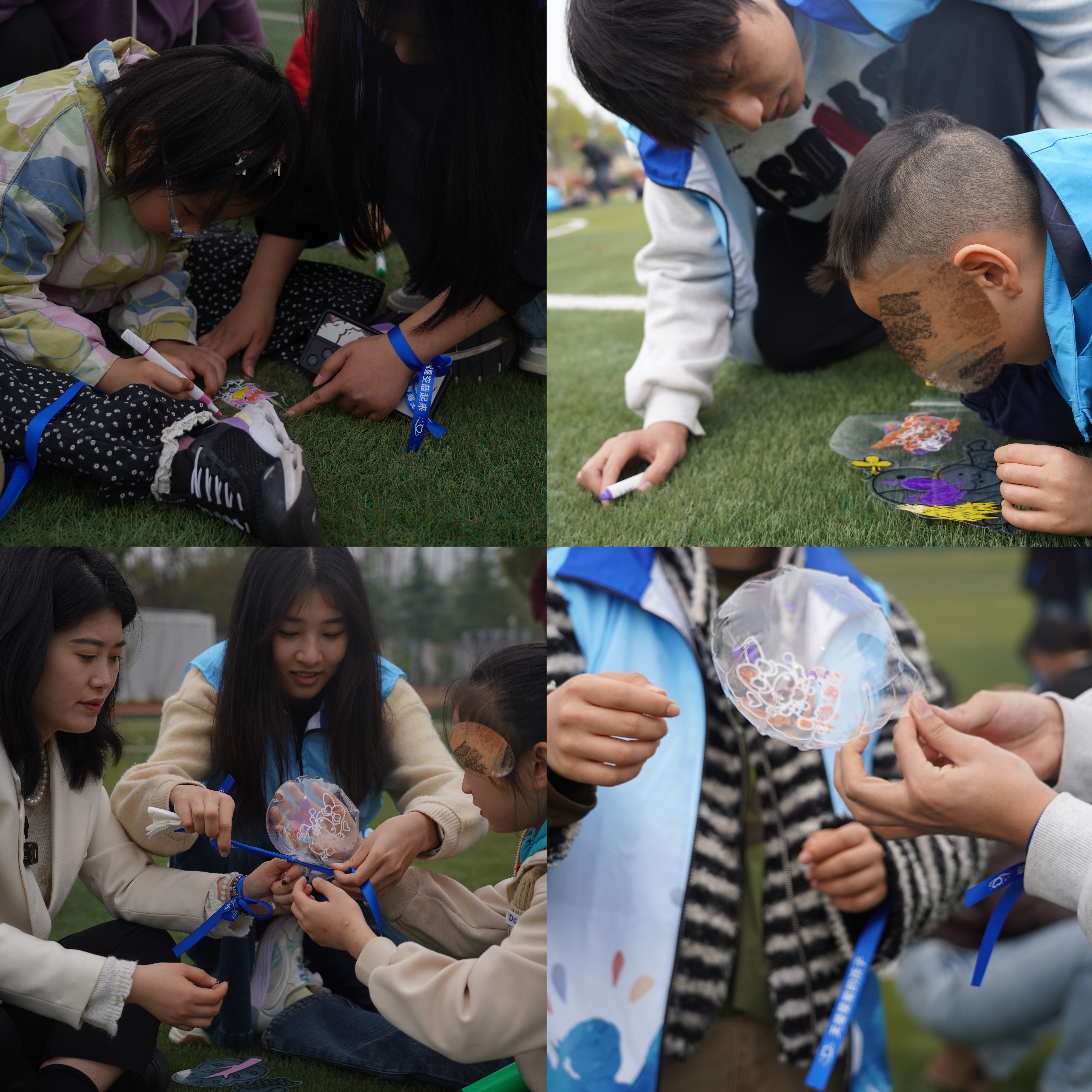 最让孩子们兴奋的,莫过于“绘出春天,放飞梦想”环节。志愿者们带来了涂色波波球和光影涂鸦材料,孩子们在气球上尽情涂鸦,志愿者们则利用专业设备为气球充气,并配合光影技术,让孩子们的作品在光影中“活”起来。当一个个五彩斑斓的气球在操场上升空,孩子们的笑声也随之飞扬。“那一刻,科技不再是冷冰冰的代码,而是变成了孩子们眼中的魔法。”