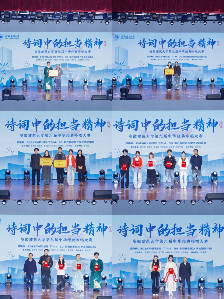 一曲诗词传古韵,满腔青春承担当。本次大赛让中华优秀传统文化在新时代校园焕发新生,也让青年学子在沉浸式体验中读懂使命、涵养情怀。这既是一场视听盛宴,更是一堂深刻的思政大课,激励着同学们从先贤志士的家国大义中汲取力量,在时代征程中找准青春坐标。学校将以文化建设为抓手,持续丰富育人形式,拓展育人内涵,引导广大青年把个人理想融入时代主题、汇入复兴伟业,在勤学苦练中增长本领,在勇挑重担中绽放青春,奋力书写属于新时代建大学子的担当篇章。(文/图:牛勤 周大年 周娅子;一审:周娅子;二审:江侠:三审:汤娜)