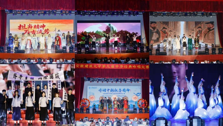 本网讯 为深入学习贯彻党的二十大和二十届历次全会精神,挖掘中华优秀传统文化的育人价值,筑牢大学生勇于担当作为的精神内核,厚植实干笃行的文化底蕴,4月15日,安徽建筑大学第九届中华经典吟唱大赛决赛在大学生活动中心举办。本次大赛以“诗词中的担当精神”为主题,由学校宣传部、纪委办、学工部、本科生院、校团委、公管学院主办,各学院协办。各学院师生代表400余人现场观摩,共同感受了一场以诗润心、以诗明志、以诗促干、以担当行的精神盛宴。