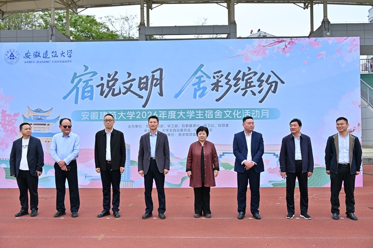 本网讯 春日融融滋雅舍,素心拓展育嘉风。为落实立德树人根本任务,营造安全、整洁、和谐、向上的宿舍环境与校园文化氛围,4月15日下午,安徽建筑大学2026年度大学生宿舍文化活动月开幕式暨大型素质拓展活动在紫云路校区田径场顺利举行。校党委书记马文革、党委副书记李早莅临现场指导,相关职能部门负责人和师生代表齐聚一堂,共同开启为期一个月的宿舍文化建设之旅。本次活动月由学校党委宣传部、学工部(学生处)、保卫处、后勤基建处、校团委联合主办。