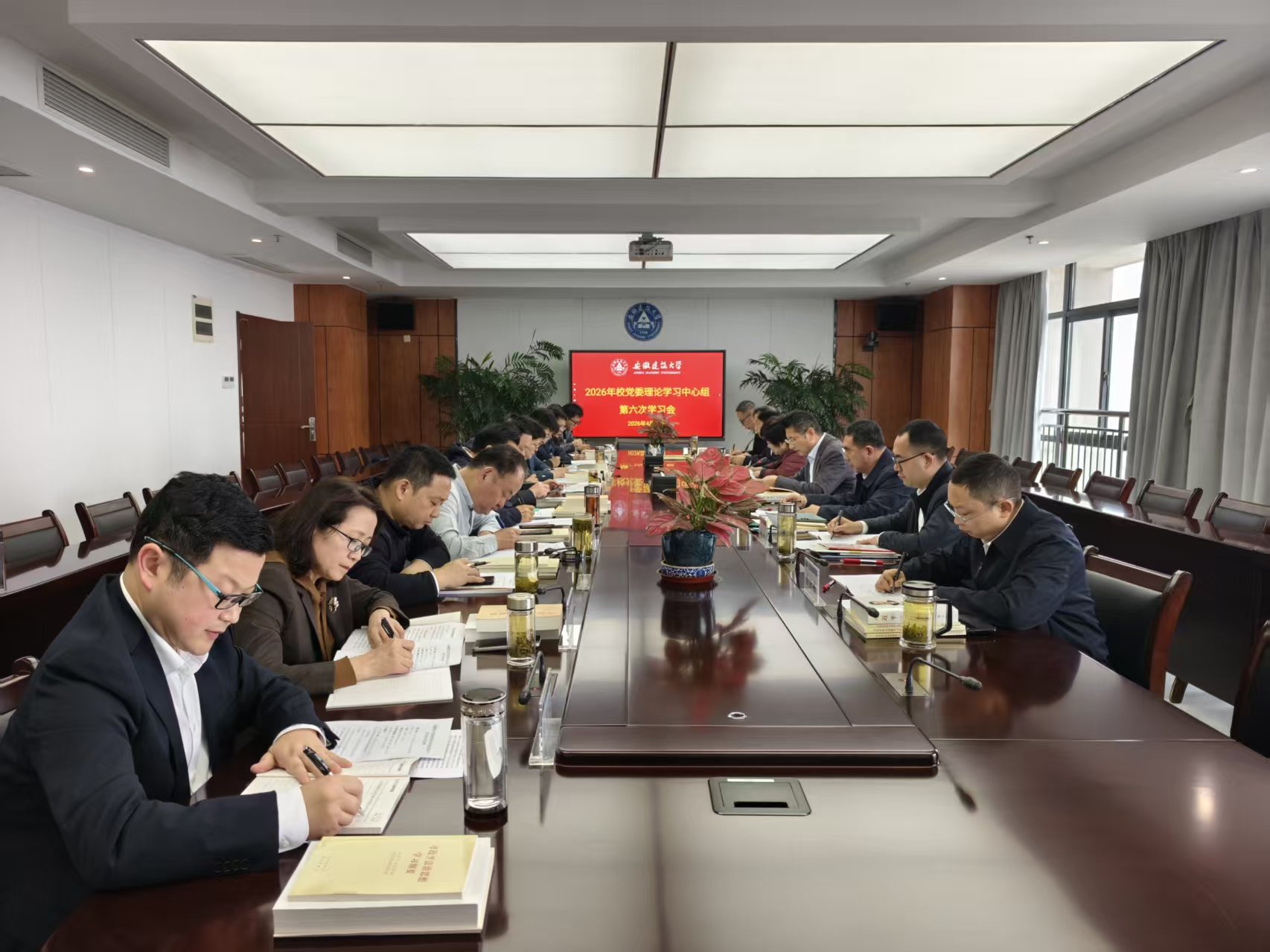 本网讯 4月16日上午,学校在紫云路校区徽风楼第二会议室召开2026年党委理论学习中心组学习第六次学习会,深入学习3月27日习近平总书记主持召开的中共中央政治局会议精神,学习习近平总书记给四所交通大学全体师生的回信精神、在河北雄安新区考察时的重要讲话精神和习近平总书记关于树立和践行正确政绩观的重要论述等。会议由校党委书记马文革主持,随机抽点许海燕、汤娜、施国栋、樊远兵四位同志列席。