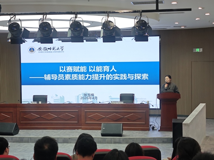 报告人简介:张玉楠,女,安徽师范大学外国语学院专职辅导员,安徽省高校优秀辅导员津贴人选。参与教育部人文社会科学研究项目1项,参与撰写《新时代安徽省高校辅导员队伍建设状况调研报告》等研究项目。2024年5月获安徽省高校辅导员素质能力大赛特等奖;2024年12月参加全国高校辅导员素质能力提升骨干训练营,获评优秀风采学员。