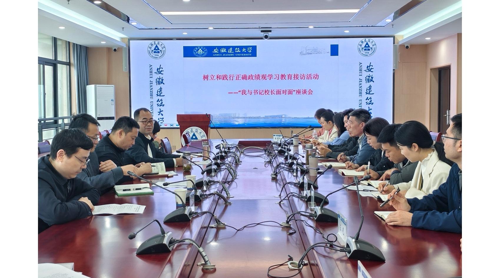 为畅通师生沟通渠道,充分听取师生意见建议,扎实推进树立和践行正确政绩观学习教育走深走实,4月22日下午,校党委副书记李早带队在紫云路校区徽韵楼6612会议室召开“我与书记校长面对面”接访座谈会,校党委常委、宣传部部长徐庚阳,本科生院(创新创业学院)院长马巍陪同。建筑与规划学院、设计创意学院党政主要领导,专业系负责人、民主党派代表、青年教师、辅导员及学生代表参加会议。