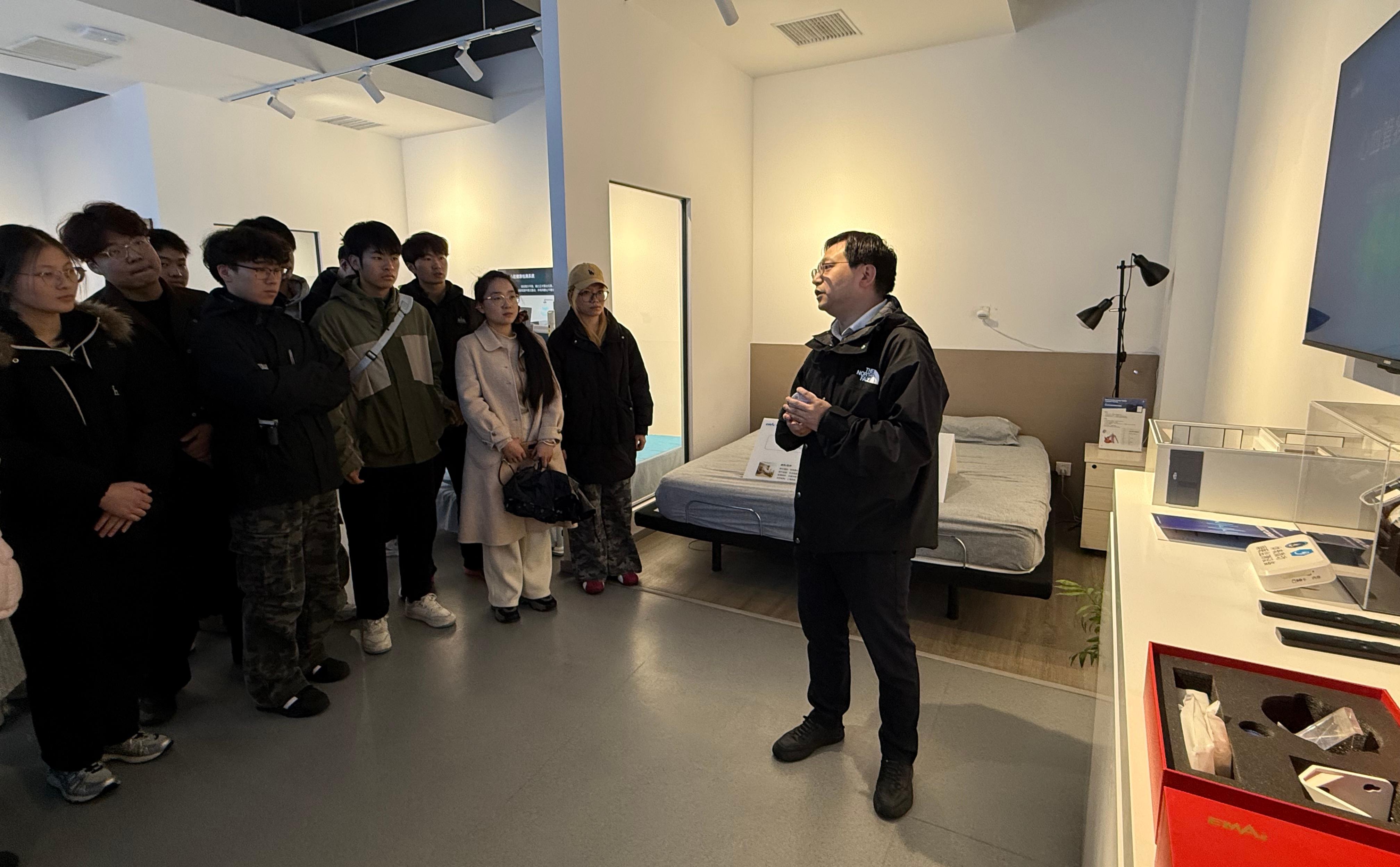 在中科知奇信息科技有限公司,公司总经理张冬博士展示了全球首创的非接触心电图监测EMCG技术,其利用毫米波雷达技术为大众提供实时健康监测及分析服务。师生饶有兴趣地体验了健康设备,纷纷感慨科技的魅力及其服务美好生活的巨大潜力。