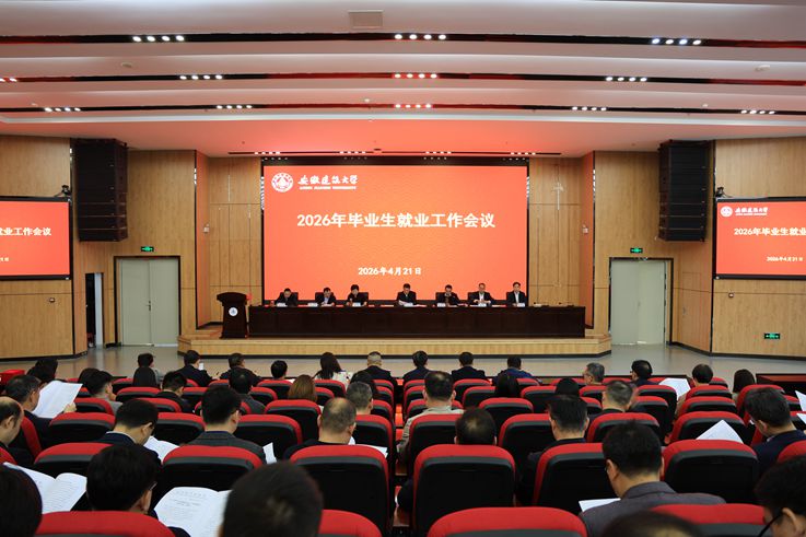 本网讯 4月21日,学校召开2026年毕业生就业工作会议,全面总结2025年毕业生就业工作成效,表彰先进典型,交流工作经验,部署2026年毕业生就业重点任务。校领导马文革、蔡国军、李早、杨科、王佐才、黄多能、高跃峰出席会议,校毕业生就业工作指导委员会职能部门主要负责人,各学院领导班子成员、全体专兼职辅导员参加会议,安徽职业技术大学、安徽城市管理职业学院相关领导及教师应邀参会,会议由校党委副书记、校长蔡国军主持。