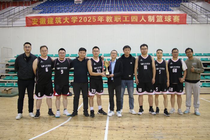 本网讯 为丰富教职工文化生活,增强团队凝聚力与向心力,近日,安徽建筑大学2025年教职工四人制篮球赛在南校区体育馆圆满落幕。本届比赛中,土木学院教职工篮球队团结一心、奋勇拼搏,凭借出色的发挥和顽强的意志,一路过关斩将,最终力挫群雄,夺得本次大赛的冠军奖杯,成功卫冕,展现了土木人昂扬向上的精神风貌。