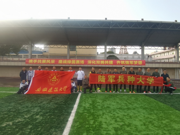 本网讯 12月13日下午,陆军兵种大学体育场内彩旗飘扬,掌声阵阵。安徽建筑大学教职工足球队与陆军兵种大学教职工足球队在此展开了一场别开生面的足球友谊赛。这场以球会友的竞技交流,既是双方体育风采的展示,更是“军爱民、民拥军”双拥共建精神的生动实践。