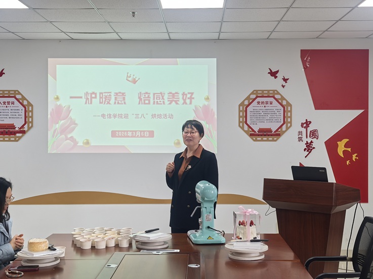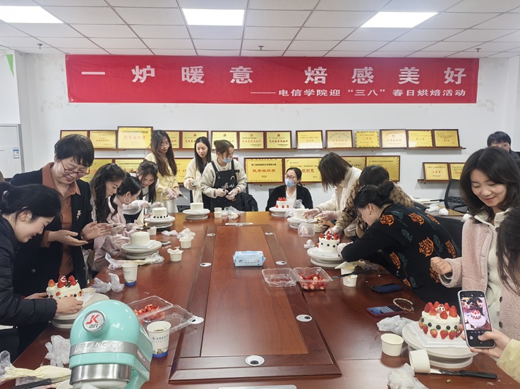 本网讯 春意融融,甜蜜满溢。为庆祝第116个“三八”国际妇女节,3月6日下午,电子与信息工程学院分工会在紫云路校区徽风楼1112会议室举办“一炉暖意,焙感美好”春日烘焙美学体验活动。校党委副书记李早,统战部常务副部长、妇联主席陈剑锐莅临活动现场,与学院30余名女教职工代表共度佳节。活动由电信学院党委书记张润梅主持。