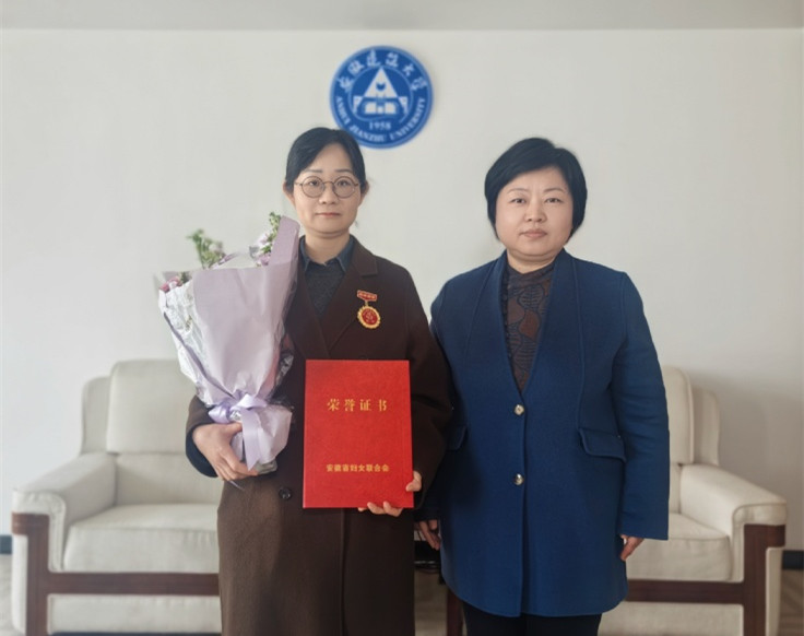 校党委副书记李早为安徽省巾帼建功标兵李璐老师颁发荣誉证书和奖章