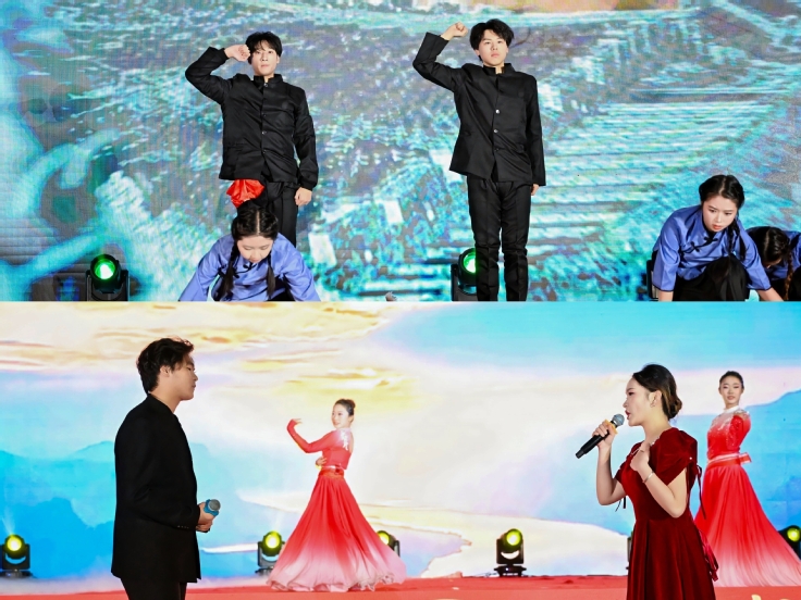 “美育润心——艺韵流芳谱华章”篇章中,舞蹈《流光燃星火》、戏曲《古韵新声》、留学生歌舞《世界连线·新年同庆》轮番上演,传统与现代交织、中外文化交融。校党委常委、纪委书记、监察专员黄多能为中华经典诵读大会获奖代表、校园十佳歌手等美育领域先进个人颁奖,展现学校以美育人、以文化人的丰硕成果。