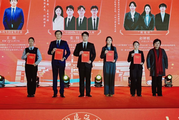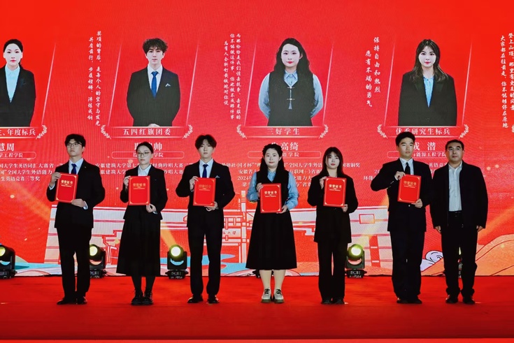 “智育启真——求是创新展风采”篇章中,快板《建大诵》细数学校学科建设与科创佳绩,配乐情景剧《信》演绎了建大学子以身许国的精神传承。校党委副书记李早为国家奖学金获得者、“中国国际大学生创新大赛”“挑战杯”获奖团队等先进代表颁奖,表彰他们在学术科研与创新实践中取得的突破性成果。