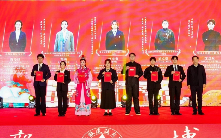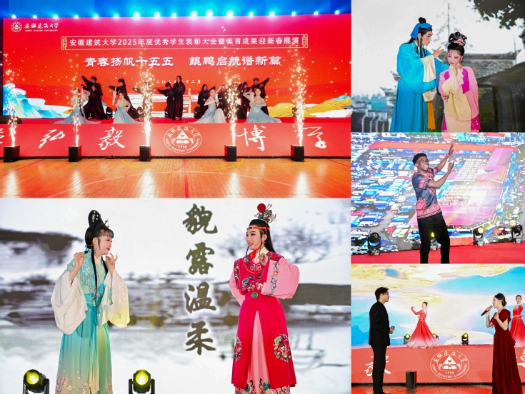 本网讯 岁序更替凝硕果,春潮涌动启新程。12月30日,安徽建筑大学紫云路校区体育馆灯火璀璨、暖意融融,学校2025年度优秀学生表彰大会暨美育成果迎新春展演隆重举行。校领导蔡国军、李早、杨科、黄多能、高跃峰出席活动,相关职能部门负责人、各学院党政领导、全体辅导员及获奖师生代表齐聚一堂,以榜样为炬传承奋进力量,以美育为媒共绘育人华章,奏响“青春扬帆‘十五五’,鲲鹏启航谱新篇”的时代强音。