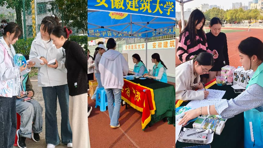 本网讯 2026年3月25日下午,安徽建筑大学青年志愿者协会主办的肺结核防治主题宣传活动,在紫云路校区南食堂门口和金寨路校区操场同步开展。本次活动以“全面行动 全力投入 全民参与 终结结核”为主题,采用“健康知识+趣味运动”的融合形式,将专业的结核病防治知识融入扔沙包、颠乒乓球、投壶等互动游戏中,吸引了近千名同学踊跃参与,在轻松活泼的氛围中传递健康理念,筑牢校园防疫安全防线。