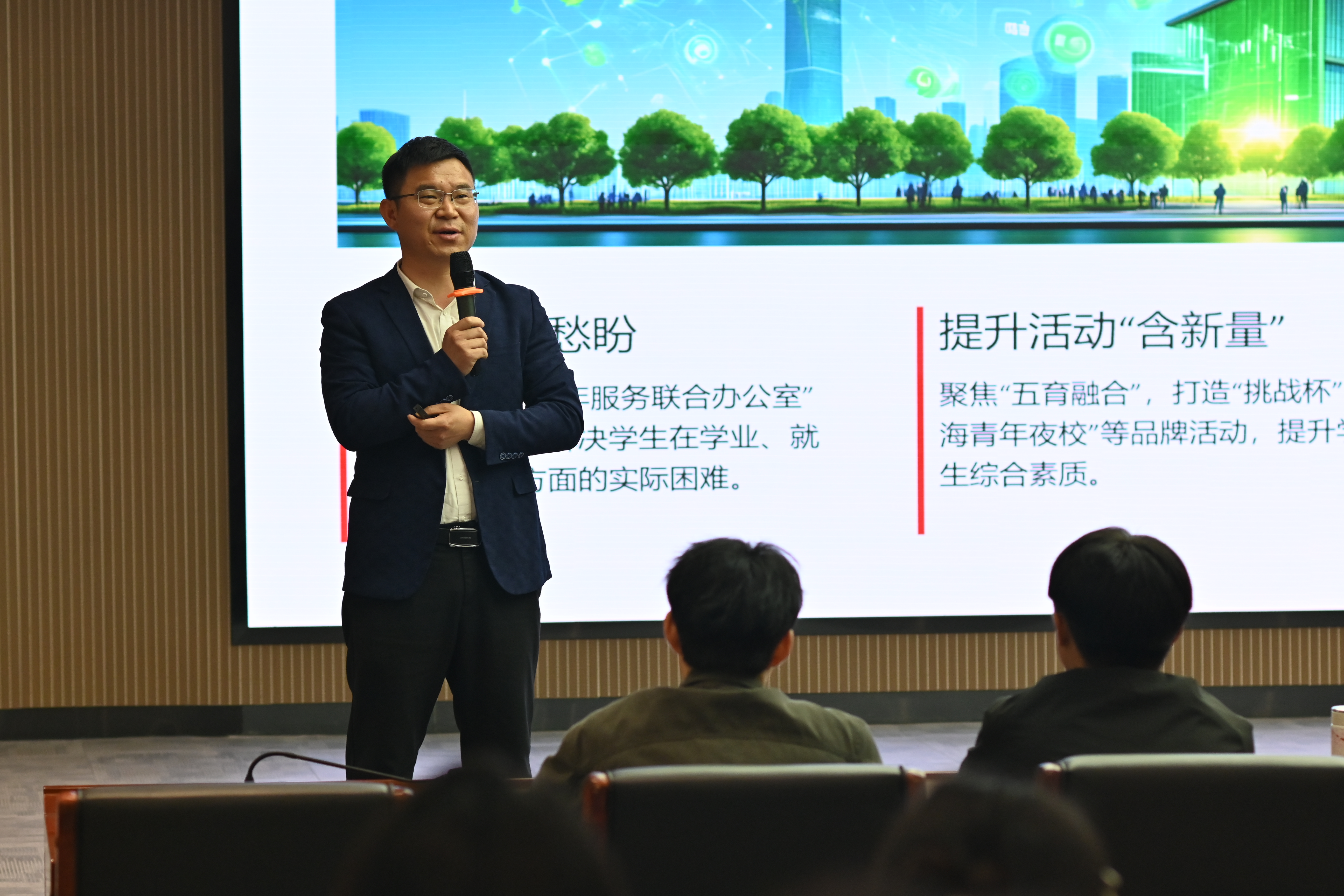 校直属学生组织依次进行工作汇报,总结成效、剖析问题、规划未来。团学新媒体中心围绕制度建设、宣传统筹、内容创作、平台运营等方面,总结年度工作成果,明确将通过完善流程、加强传帮带、优化内容质量,推动校园宣传工作提质增效。青年科创实践中心聚焦赛事宣传、项目培育、实践拓展、服务保障,梳理科创赛事宣讲、“科创赛事进学院”、“挑战杯”校赛选拔等工作,后续将重点推进“挑战杯”省赛项目培育、暑期“三下乡”社会实践筹备,并提出扩大宣传、完善内部机制等改进方向。汇报内容详实、规划清晰,获得在场同学广泛认可。