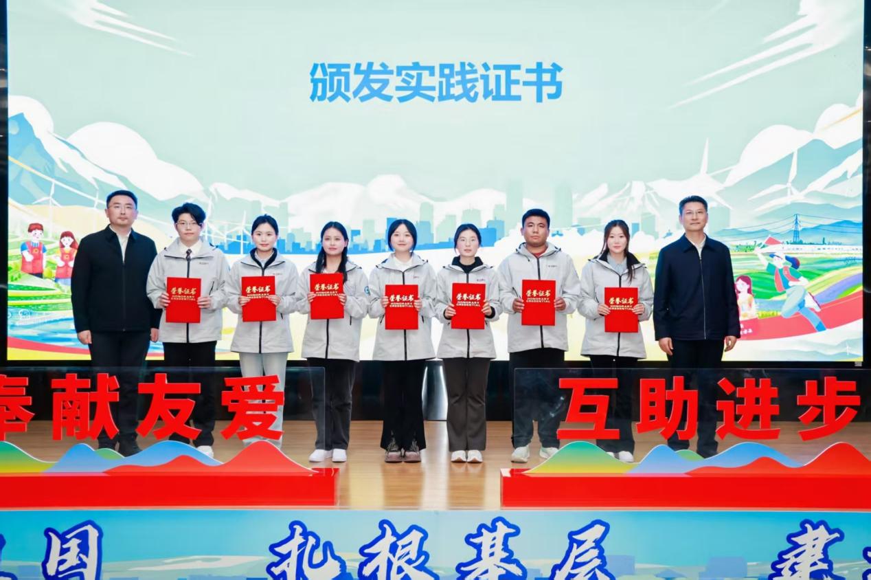 分享结束后,与会领导为分享团成员颁发实践证书并合影留念。