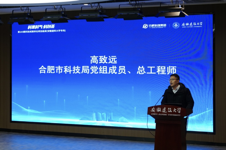 本网讯 12月24日,“科里科气・科创荟”第103期科技成果转化项目路演安徽建筑大学专场在徽智楼(国土空间大数据中心)报告厅举办。本次活动由中共合肥市委科技委员会办公室(市科技局)与安徽建筑大学科技成果转化处主办,合肥市科创集团、合肥市科技企业孵化协会、合肥市新型研发机构联合会承办。