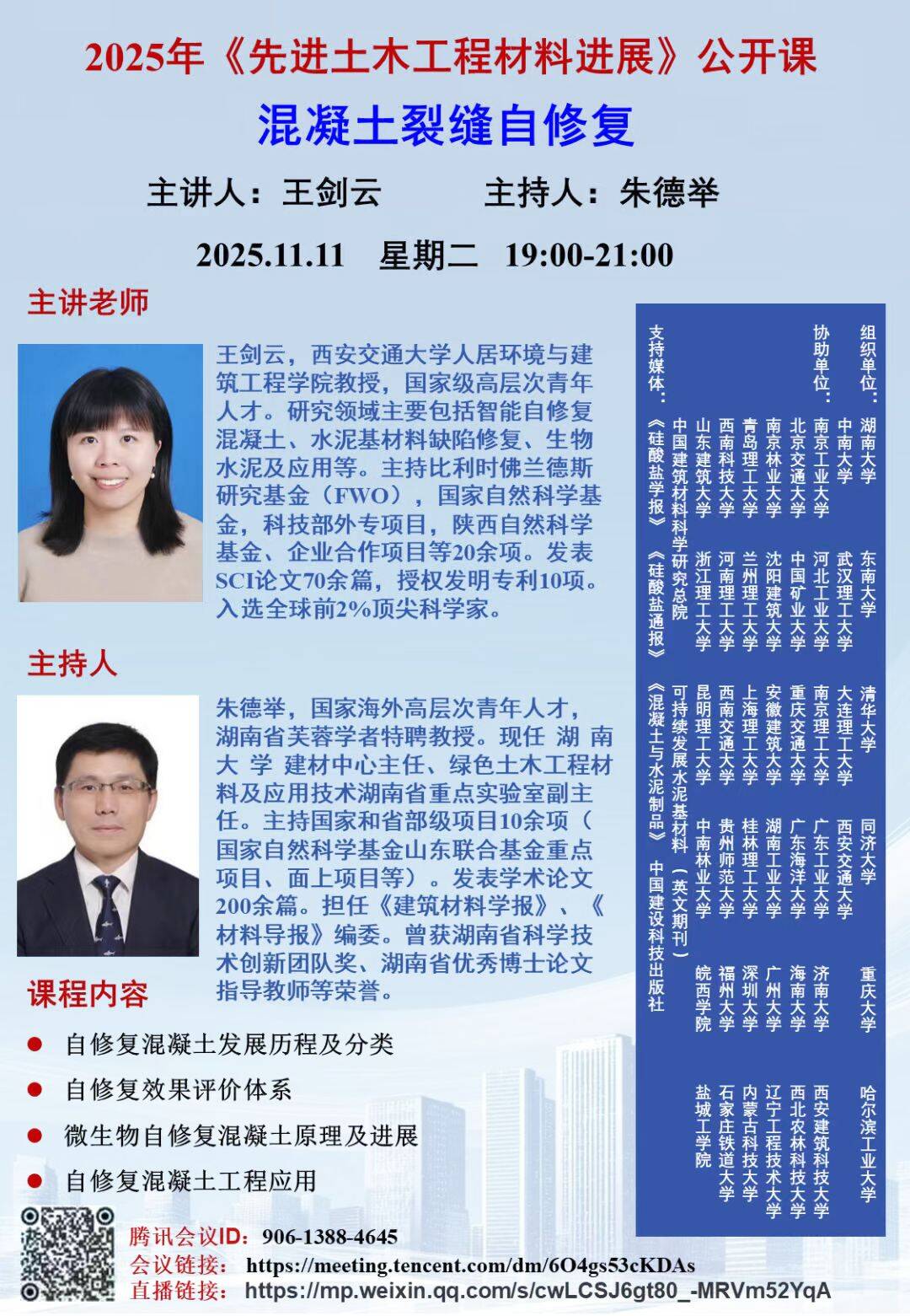 2025年《先进土木工程材料进展》公开课--混凝土裂缝自修复