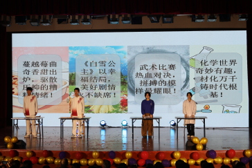 创意纷呈的语言类节目深刻而诙谐,引发阵阵共鸣与思考。由宣传部带来的小品《谁杀死了周日》,以诙谐幽默的表演形式深刻剖析拖延症的危害,让观众们明白目标制定后执行的重要性。学习部打造的《校园反诈行》紧贴校园现实,一幕幕真实案例情景再现,在一片欢声笑语中,筑牢同学们校园反诈安全意识,为安全和谐校园建设打下坚实的基础。文艺部演绎的《甄嬛传·内卷风波》更是妙趣横生,犀利刻画了当代大学生面临的压力与选择,让同学们正视压力与动力并存、机遇与挑战同在,激励他们在时代的浪潮中勇挑大梁、开拓进取。办公室带来的《直播事故》,以串台杂糅的表现形式,穿插于“烘焙制作、故事朗读、武术比赛、化学实验”四个直播现场,引得现场观众阵阵掌声。志愿服务中心的相声《三句半》将校园生活面面俱到地搬到舞台活灵活现。实践部的小品《白雪公主与硬核小矮人》将传统故事焕发新意、充满奇趣,博得了满堂喝彩。特别是心理部与新媒体编辑部联合创作的心理剧《破茧的微光》,聚焦家庭矛盾与心灵治愈,体现了同学们的互相鼓励如微光汇聚、足以照亮阴霾的力量。