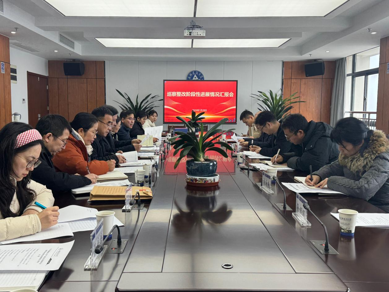 本网讯 1月28日,产业党总支在紫云路校区徽风楼第五会议室召开巡察整改工作阶段性推进会。校党委巡察整改督查组成员、产业党总支(产业管理处)全体成员、校企领导班子及校企巡察整改工作组成员参会,会议由产业党总支书记、产业管理处处长丁琨主持。