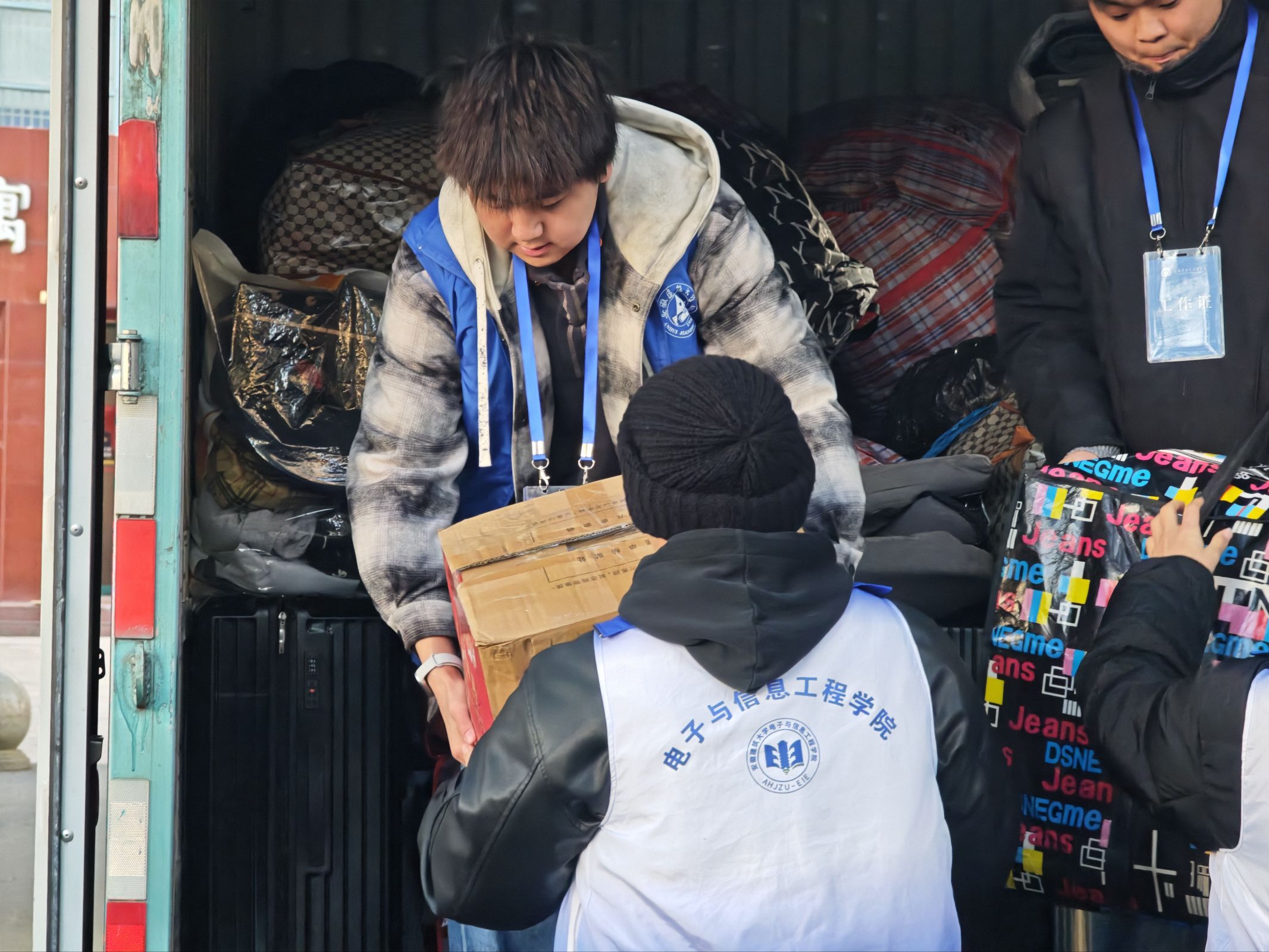 12月26日下午,学院提前组建的学生骨干志愿者服务队已整装待发。志愿者们身着统一服装,早早驻守在校园下车点、宿舍楼下等关键区域,欢迎联培学习返校并帮助同学们搬运行李。从下车点到宿舍楼下,志愿者们忙碌的身影穿梭在校园中,成为冬日里一道暖心风景线。他们用实打实的行动为学子们筑牢“归家第一站”的温暖防线,让同学们刚踏入校园就深切感受到了学院大家庭的浓浓关怀。