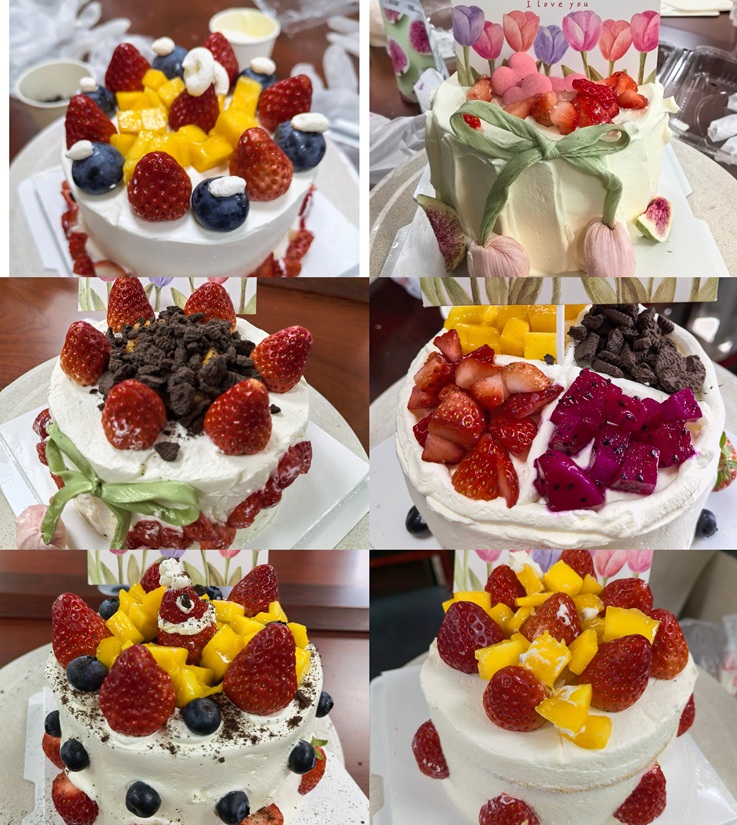 致辞结束后,专业烘焙师现场为大家分享烘焙常识与制作技巧,并指导老师们亲手制作节日蛋糕。在轻松愉悦的氛围中,女教职工们用心涂抹奶油、精心装饰水果,尽情发挥创意与巧思。一个个造型精美、独具匠心的蛋糕作品陆续诞生,现场欢声笑语不断,香气四溢。