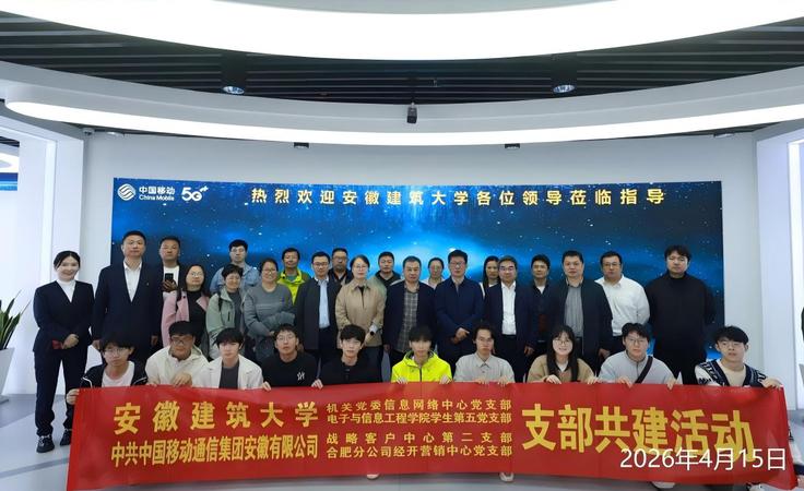 本网讯 为深入学习贯彻习近平新时代中国特色社会主义思想,推动党建工作与业务发展深度融合,积极探索校企党建共建新路径,4月15日下午,安徽建筑大学机关党委信息网络中心党支部、电子与信息工程学院学生第五党支部与安徽移动战略客户中心第二党支部、合肥分公司经开营销中心党支部联合开展了“党建和创”主题实践活动,旨在通过党建引领,促进校企双方在信息化建设、人才培养、资源共享等方面的深度合作。