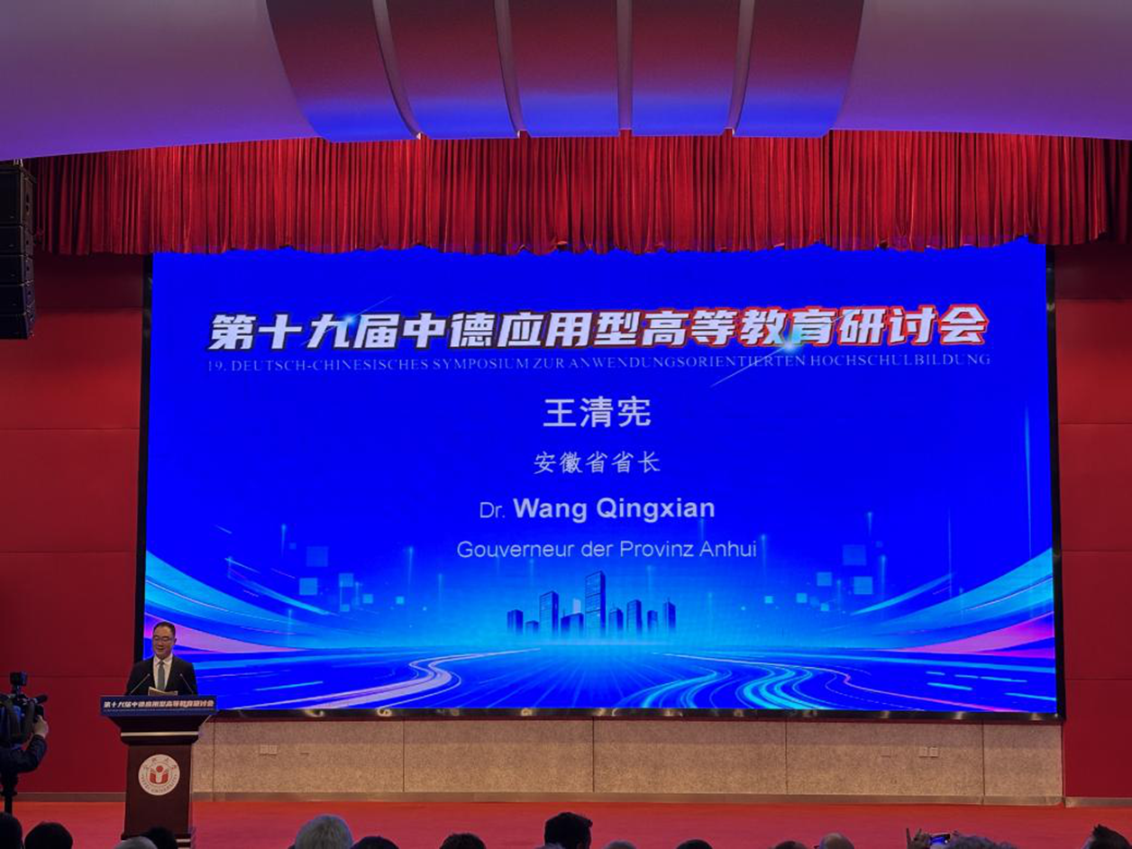 4月15日至16日,以“AI赋能与学科交叉:构建应用型高等教育新生态”为主题的第十九届中德应用型高等教育研讨会在安徽举行。本届研讨会由安徽省教育厅、德国下萨克森州科学与文化部共同主办,合肥大学、德国奥斯纳布吕克应用科学大学承办,滁州学院协办。来自德国下萨克森州与安徽省政府、中德有关高校、科研机构、国内外行业组织及企业的200余位代表齐聚一堂,共同探讨人工智能时代应用型高等教育高质量发展的新路径。学校发展规划处副处长张家精教授和电信学院副院长汪莉丽教授应邀参会。