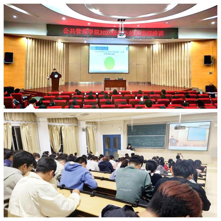 本网讯 为助力2025级新生熟悉校园规章制度,强化其纪律意识与责任担当,引导新生以规范行为开启大学生涯,10月14日公共管理学院在图书馆二楼报告厅开展“知规守纪 笃行逐梦”为主题的新生校纪校规专题培训会。由学院吴永杰老师主讲,2025级新生辅导员及全体新生共同参与本次培训。
