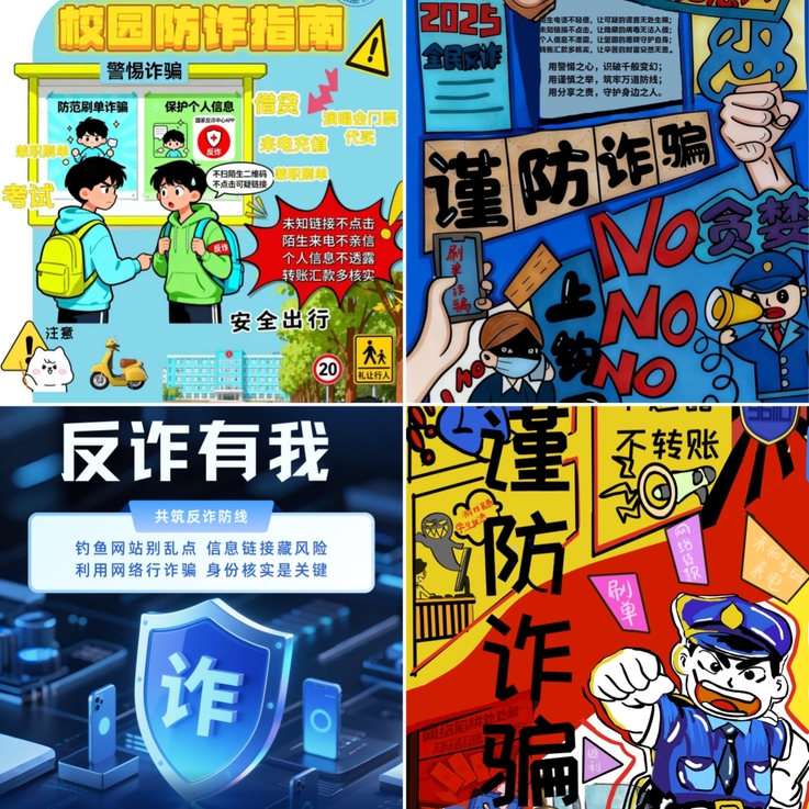 本次大赛以“青春无诈 安全同行”为主题,自启动以来吸引了学院各年级学生踊跃参与。在海报创作大赛中,参赛选手们围绕“虚假网络贷款”“刷单返利诈骗”“冒充客服诈骗”“校园贷陷阱”等大学生高频遭遇的诈骗类型,结合真实案例进行艺术创作,参赛作品风格多样,有的以强烈的色彩对比突出反诈主题,有的用简洁有力的文字直击人心,有的通过漫画故事展现反诈细节。在主题短视频大赛中,有同学以情景剧形式还原诈骗套路,用幽默反转的剧情警示风险;有同学通过动画演示,清晰拆解诈骗分子的作案流程;还有同学采访校园安保人员与辅导员,传递专业的反诈建议。