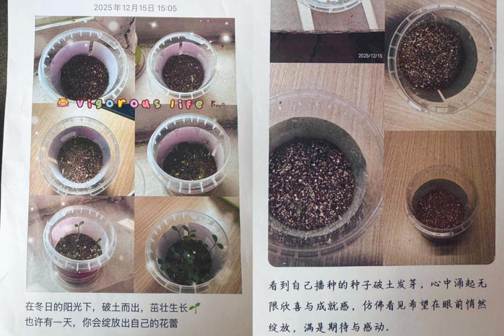“播种悟蓄 待芽成长”种植感悟活动同步推进,将抽象的“蓄势”理念转化为具象实践。同学们从学院心理辅导站领取花种与定制种植盒,认真书写专属“蓄势目标”,以宿舍为单位打造“种子成长角”,坚持每周记录种子生长全程。在亲手培土、悉心浇灌的过程中,同学们真切感受生命成长的不易,深刻体悟扎根积累、厚积薄发的生命智慧。
