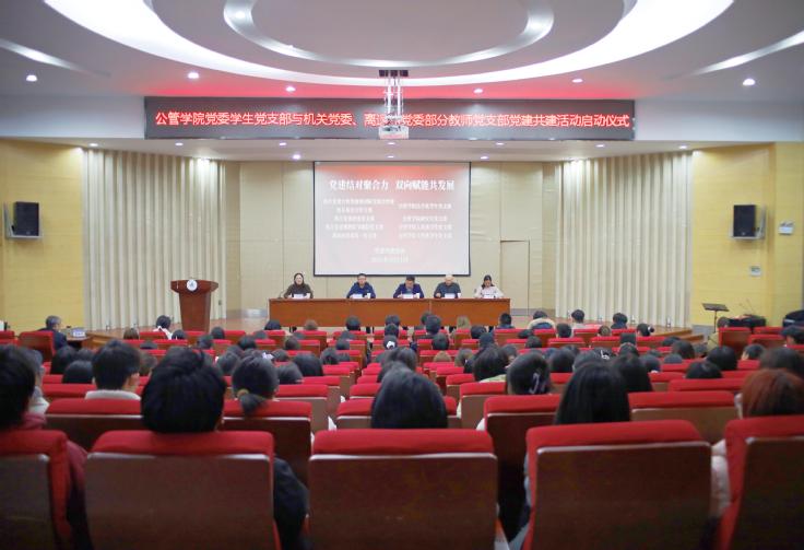 本网讯 党建结对聚合力,同心育人启新程。党建共建是强化基层党组织政治功能和组织功能的重要抓手,更是以高质量党建引领学校高质量发展、落实立德树人根本任务的有效路径。为深入贯彻新时代党的建设总要求,全面落实学校《关于进一步深化改革,加强效能建设的实施意见》及“高效办成一件事”工作部署,推动基层党组织资源整合、优势互补、互助共进,构建师生联动、多方协同的育人新格局,3月11日下午,公管学院党委学生党支部与机关党委、离退休党委部分教师党支部在金寨路校区图书馆二楼报告厅举行党建共建活动启动仪式,机关党委、离退休党委部分教师党支部代表、学院学生党支部书记和200余名学生党员及骨干参加仪式,学院党委书记汤娜主持会议。