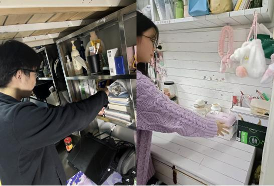 寝室收纳是活动的第二个主题,同学们通过对物品的取舍和收纳,进而完成对寝室的美化,简单几个步骤让寝室环境变得赏心悦目。