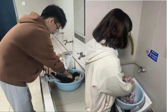 整理衣物是本次活动的第一个主题,同学们纷纷展示自己洗衣服、叠衣服和缝衣服的“高超”技能,把衣物安排的井井有条。