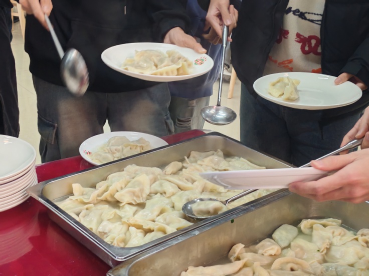活动当天,经管学院易班工作站的成员们早早地来到了活动现场,开始了紧张而有序的准备工作。他们分工明确,一部分人负责和面、擀皮,另一部分人则负责调馅、包饺子。在劳动的过程中,大家不仅锻炼了动手能力,还深刻体会到了团队合作的重要性。随着一个个饱满的饺子在大家的巧手中诞生,活动也进入了高潮。易班工作站成员们将煮好的饺子端到了考研学子面前,为他们送去了冬至的温暖和祝福。