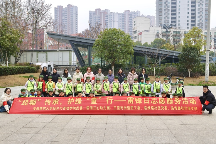 本网讯 3月4日,在第62个 "学雷锋纪念日" 来临之际,受三里街街道团工委、临淮路社区党委、临淮路社区团支部邀请,经济与管理学院 "菁琯" 青年志愿者服务队15名队员走进合肥瑶海三心幼儿园,通过 "故事讲述+仪式教育+劳动实践" 三位一体模式,为30余名学龄前儿童带来沉浸式雷锋精神教育体验。