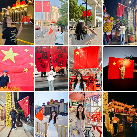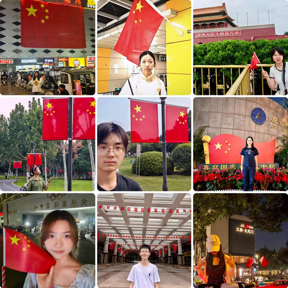 一抹鲜红,一份信仰。活动自开展以来,便得到了支部党员的积极响应。校园内外,无论是鲜花簇拥的校门前、书声琅琅的教学楼下还是庄严的天安门广场前、悬挂着国旗的路灯杆下,抑或是充满节庆氛围的大街小巷,都成为了同学们与国旗同框的“打卡点”。同学们或手持小型国旗,脸上洋溢着自豪的笑容;或簇拥在巨幅国旗周围,眼神中透露出坚定的信仰;或设计出别具匠心的队形,以青春之名,向祖国致敬。快门按下的瞬间,不仅定格了青春与国旗交汇的动人画面,更将“清澈的爱,只为中国”的情感深深烙印在每一位学子的心间。