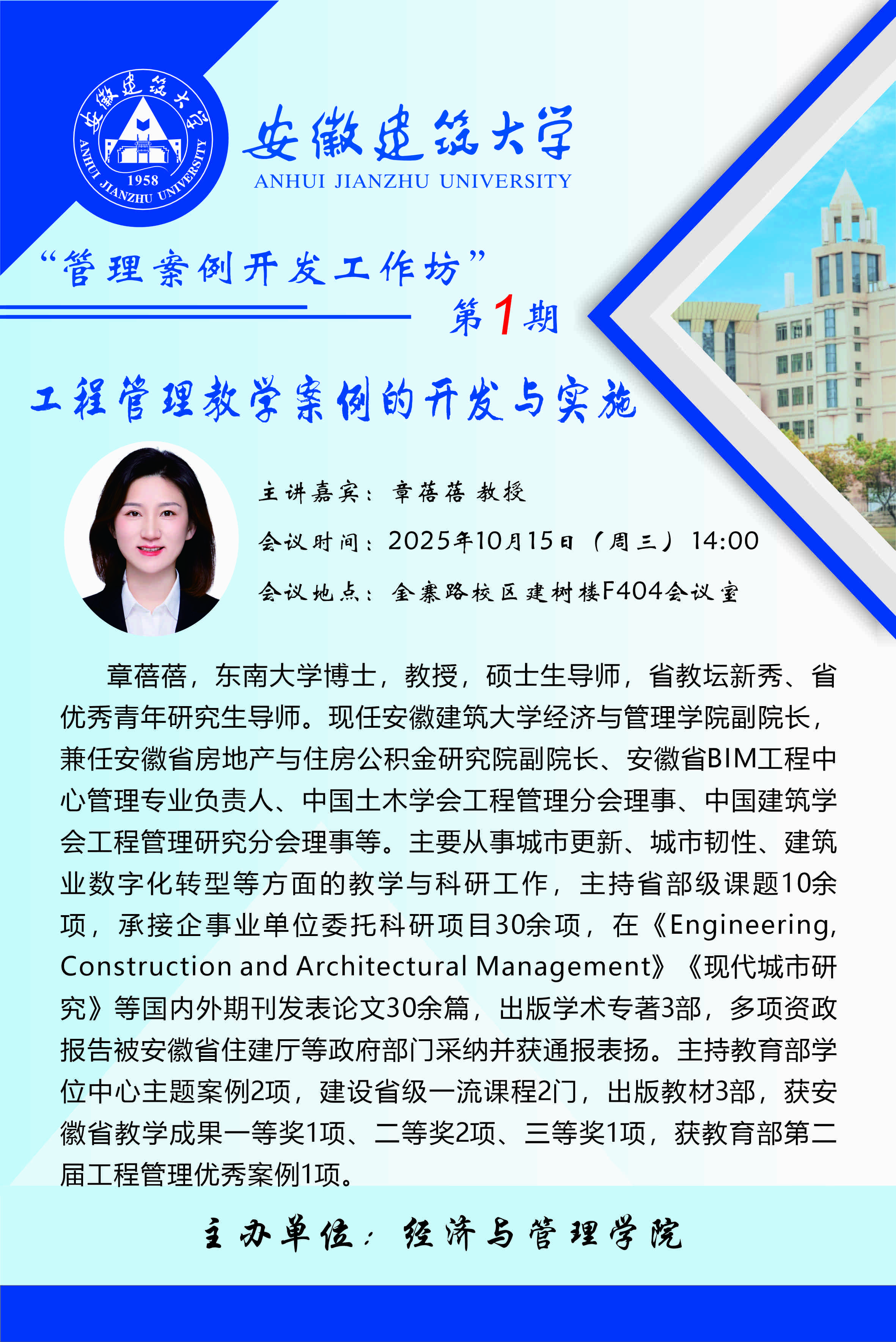 【预通知】 “管理案例开发工作坊”(第一期) 工程管理教学案例的开发与实施