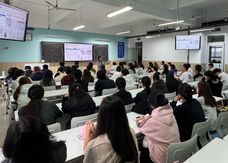 随后,朱素媛具体介绍了保障双创教育落地的配套措施,并对学院开设的“创新工程与创业管理”微专业进行了说明。本次“双创教育第一课”活动内容丰富、氛围热烈,不仅让2025级新生深入了解了学院创新创业教育的情况,更在他们心中播下了敢于突破、勇于实践的种子。